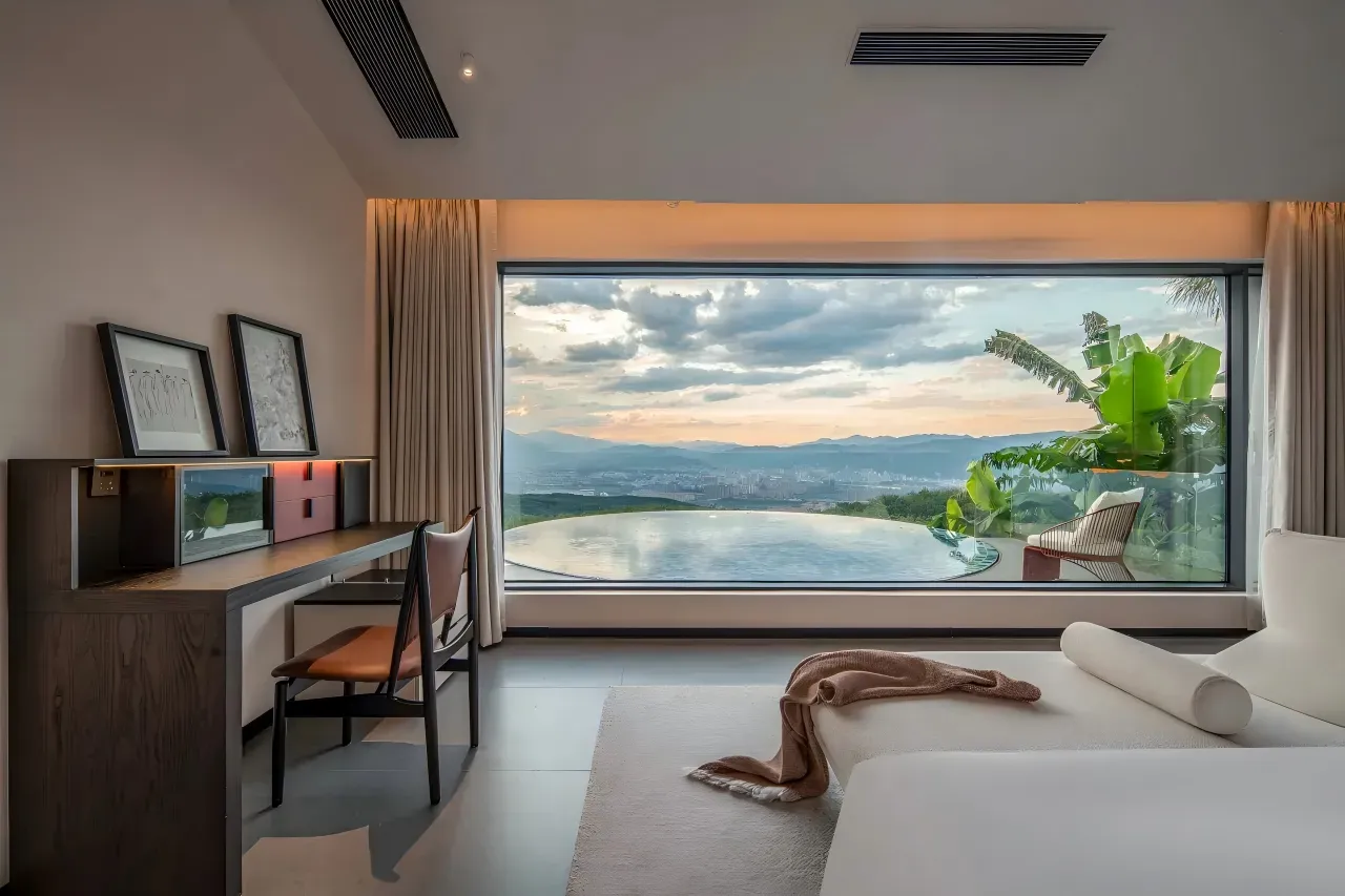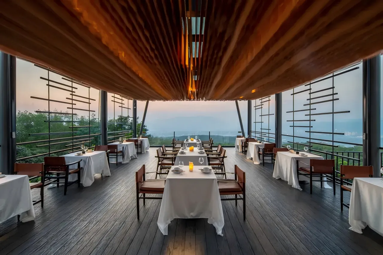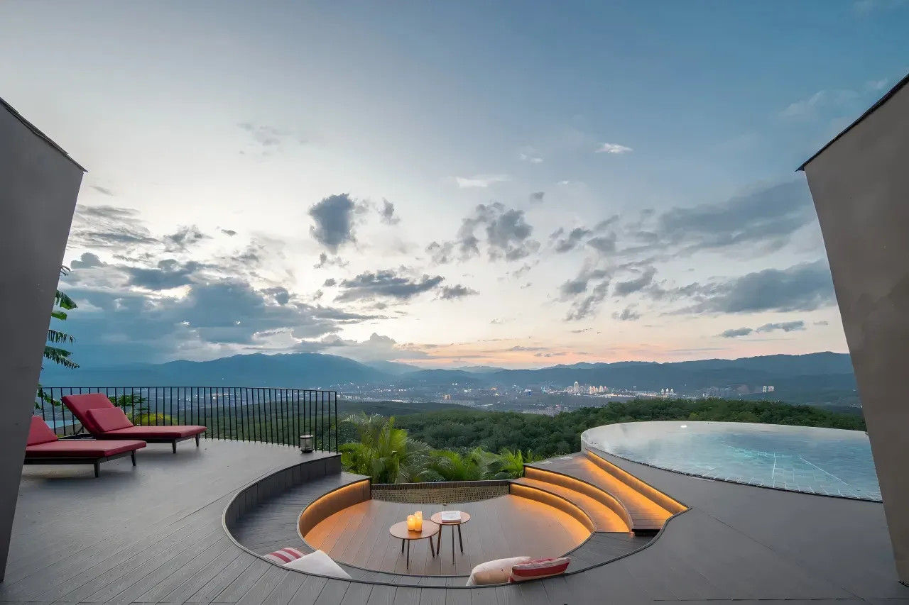 以普洱茶文化为灵感,现代设计融合傣族元素。置身空中露台,恍如悬浮于雨林之上,俯瞰城市流光与远山叠翠。