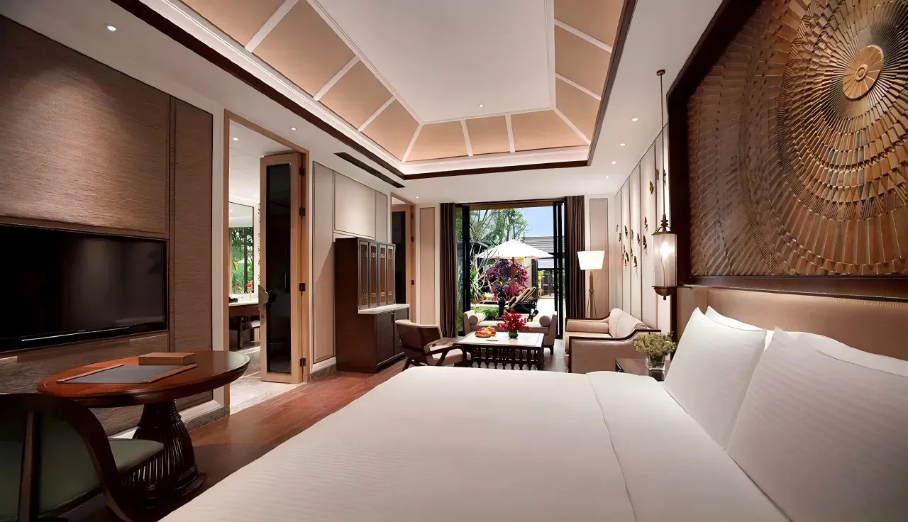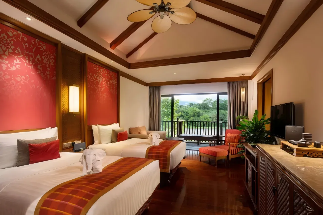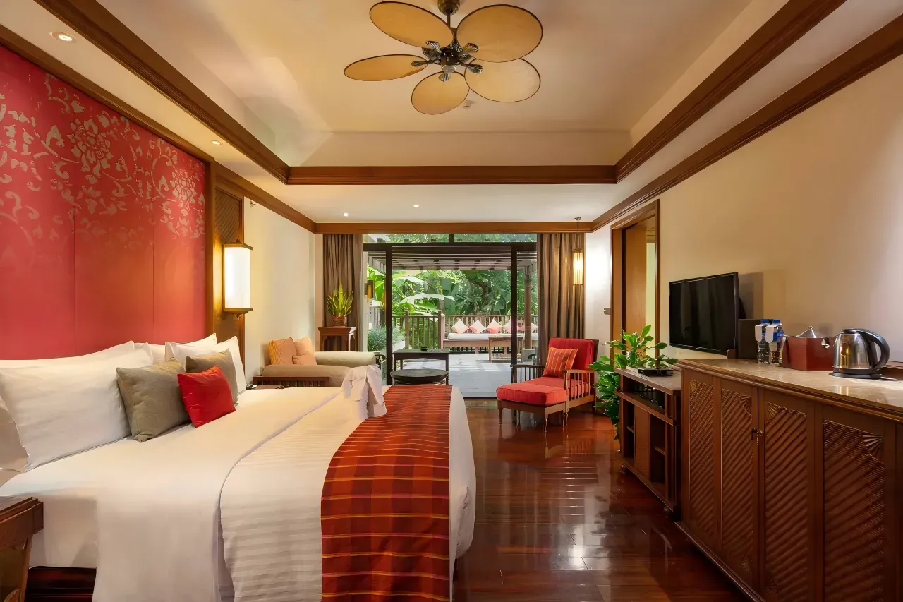 酒店坐落在罗梭江畔,被热带花园环抱。完美融合了傣族风格与现代奢华,每扇窗外都是一幅热带雨林之画。这里的空气里会有兰花的清香。