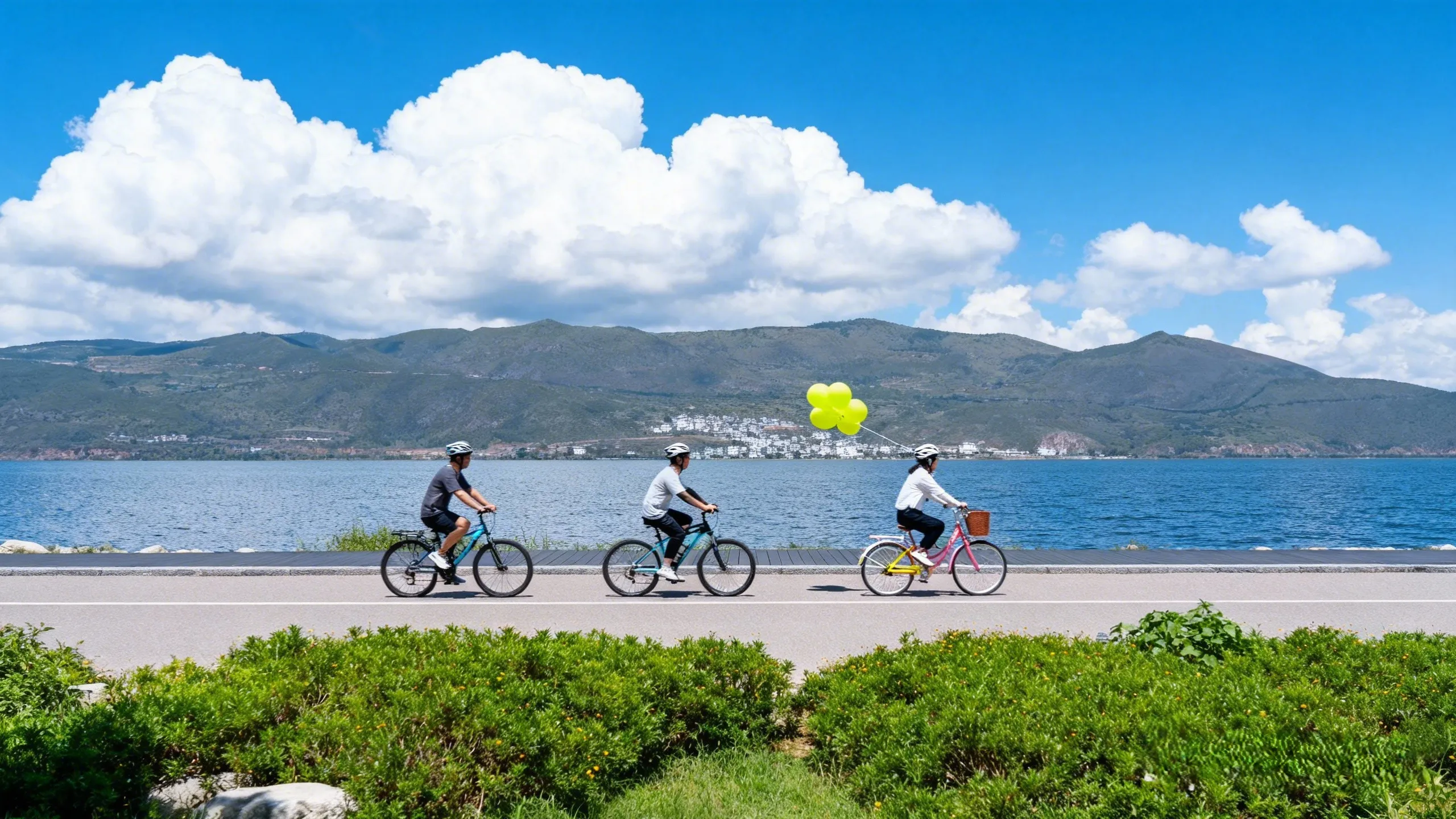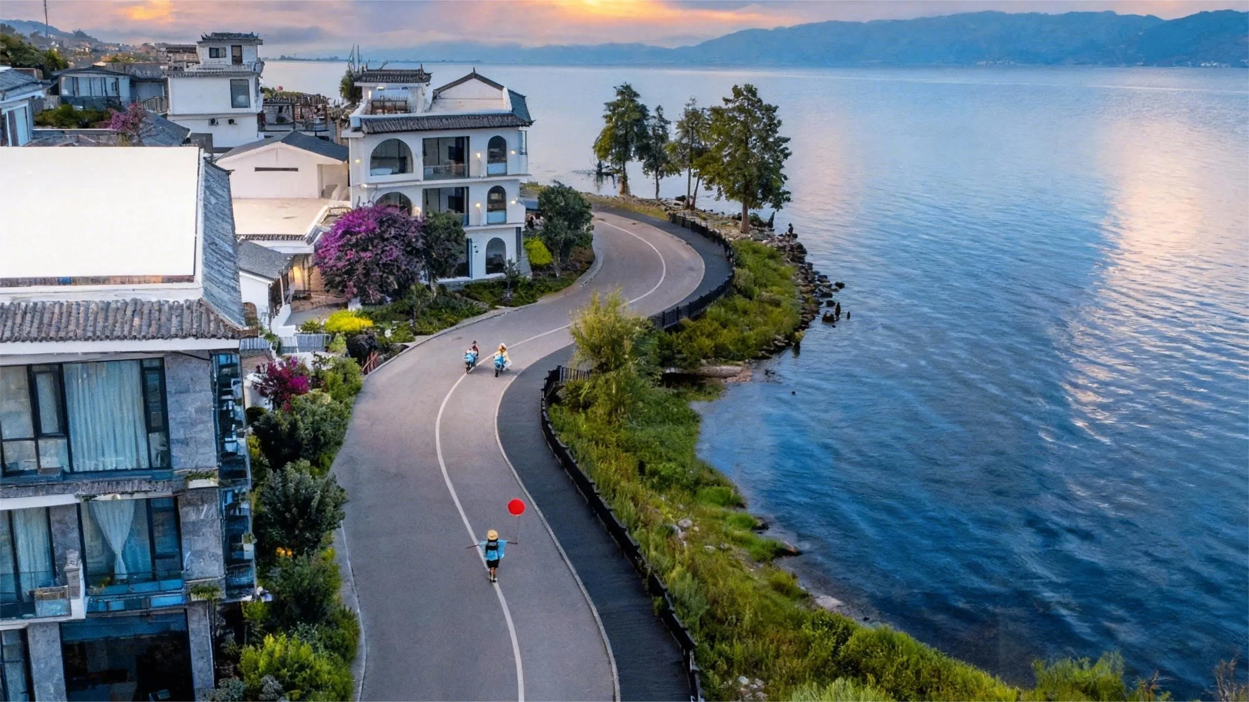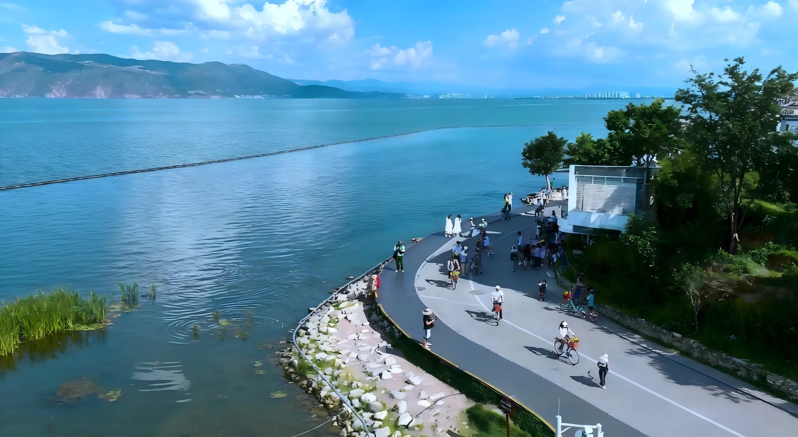 沿洱海生态廊道,一路骑行。寻一处风景驻足,晨光洒落,洱海波光如碎银轻漾,苍山云雾似画屏半卷。偶有红嘴鸥掠过水面,你不再是看风景的人,而是流动在苍洱画卷里的一行诗。