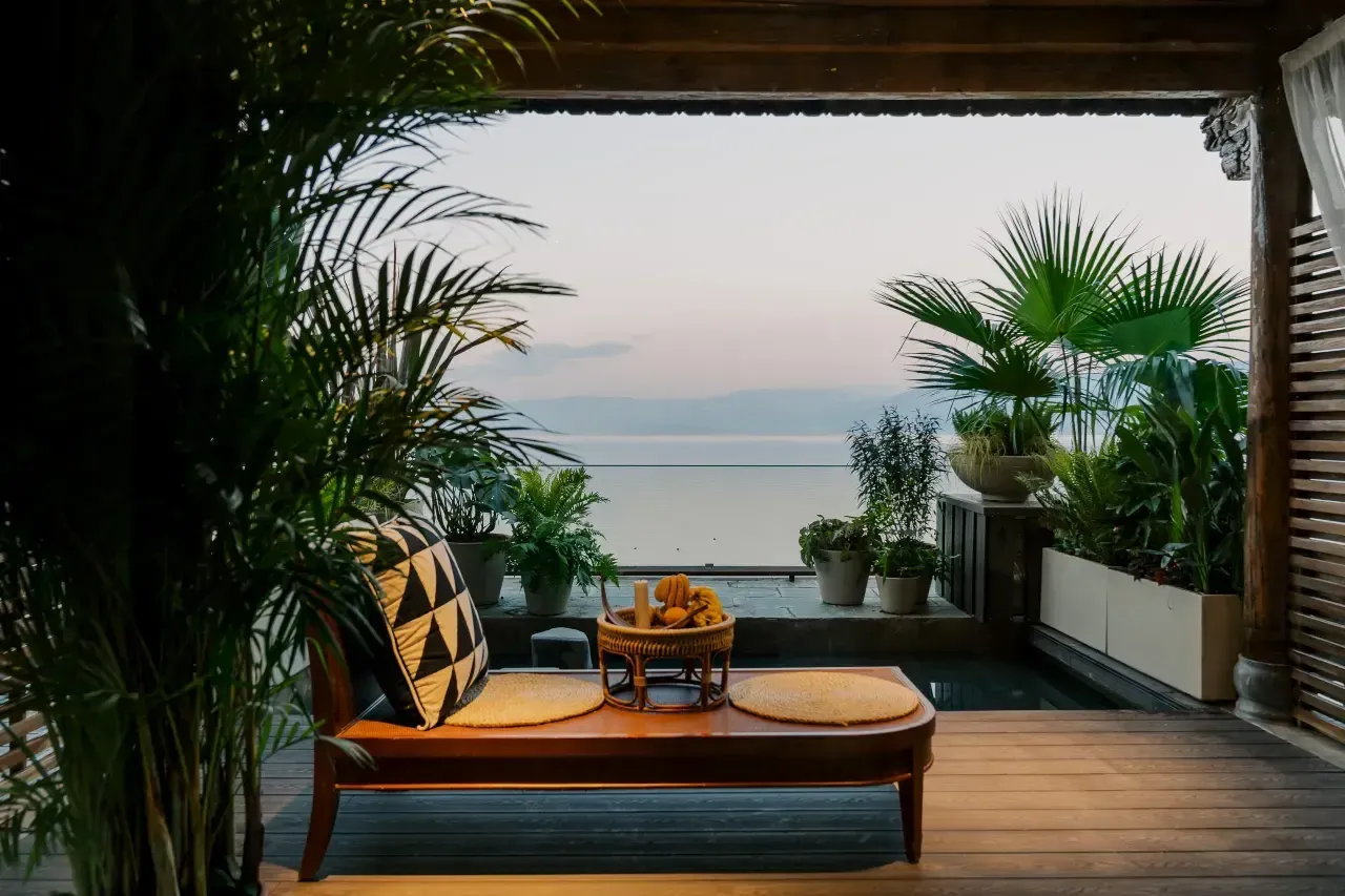 藏于洱海静谧一隅,侘寂风与自然材质营造宁静氛围。房间最小38㎡左右,细节精致。在游人未至的清晨,独享洱海最宁静的波光,寻得闹中取静的悠然。