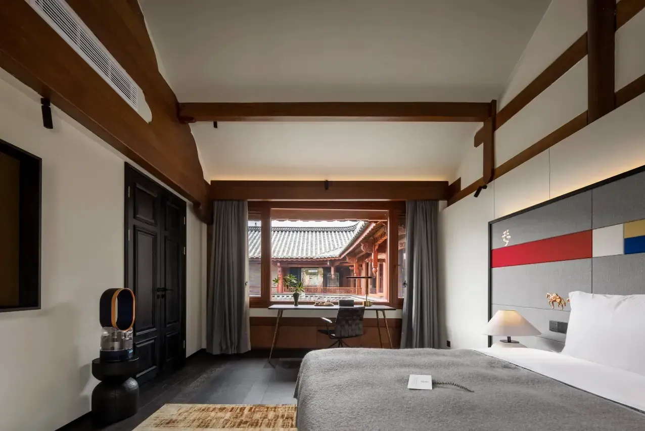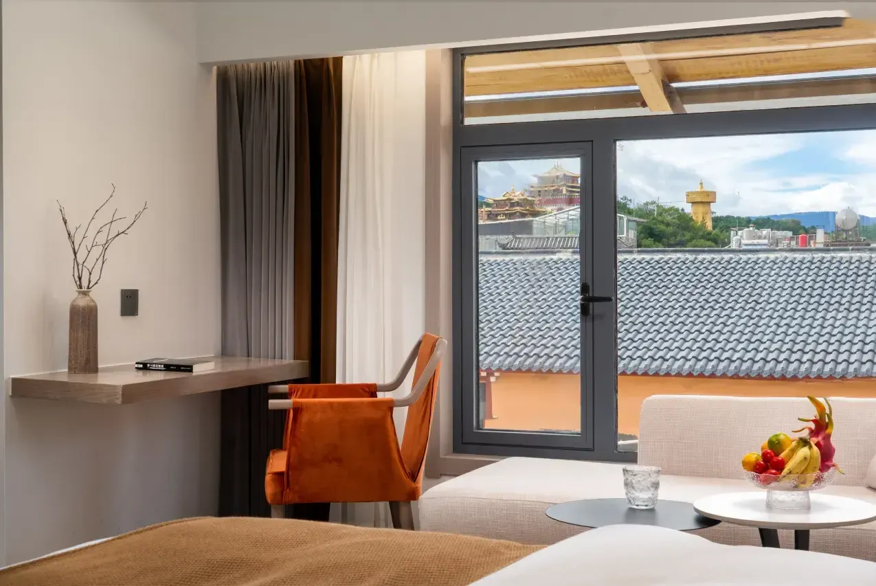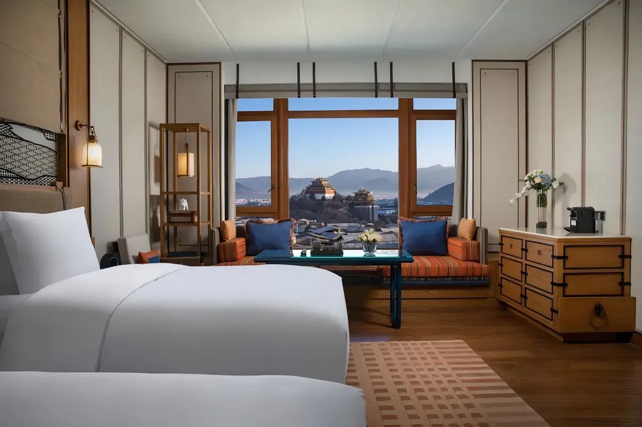 依托独克宗古城而建,以"通往香格里拉秘境之门"为设计灵感。客房最小45㎡左右,融汇藏式元素与现代美学。在高原圣洁的光影中,于窗前静观日月同辉,俯瞰古城炊烟,完成一场与信仰之光的隔空对话。