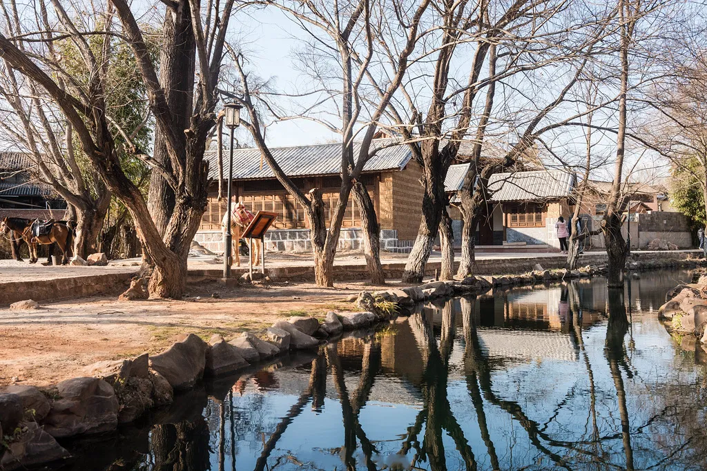 午后,我们沿着茶马古道的方向前往沙溪。当车轮碾过山路的蜿蜒,时光仿佛开始倒流。抵达沙溪时,斜阳正为寺登街的古戏台镀上金边,黑惠江畔的玉津桥静静伫立,马帮的铜铃声仿佛还在风中回响。这里的每块青石板都被岁月打磨得温润如玉。