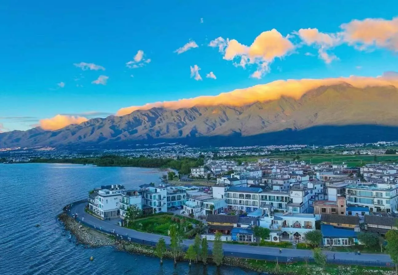 午后,我们沿着洱海来到双廊古镇。阳光在湖面上洒下万千碎金,远处的苍山轮廓在薄雾中若隐若现。沿着石板小径漫步,会发现这里处处藏着艺术的气息——是某家临海咖啡馆里正在创作的画家?还是某座老宅改造的艺术空间?当夕阳西下,整个双廊被染成金红色,这是洱海一天中最温柔的时刻。