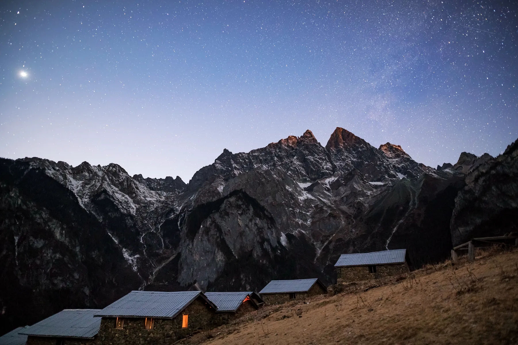 午后启程前往巴拉格宗,当车辆在盘山公路上蜿蜒,窗外的景致从草原牧场渐变为深峡峭壁。傍晚抵达时,夕阳正为峡谷披上金色外衣,入夜后,这里将成为观赏星空的绝佳位置——没有光污染的夜空里,银河仿佛触手可及。