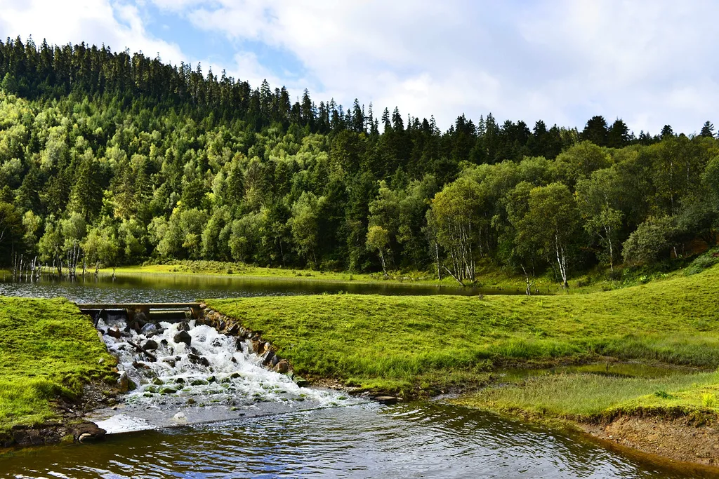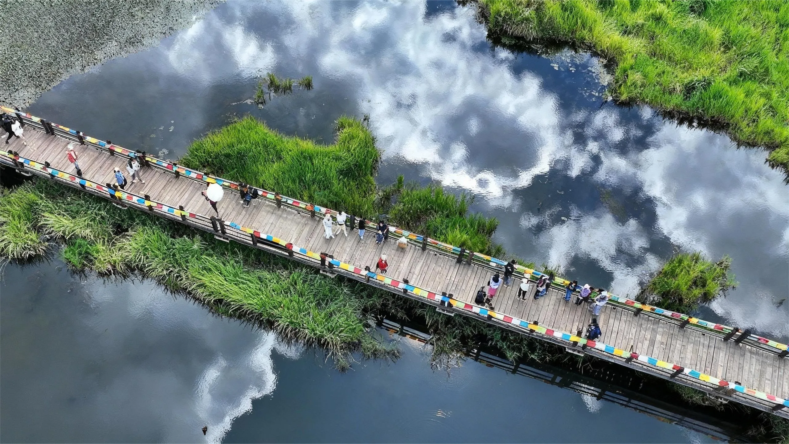 是滇西北的华彩乐章已经结束,普达措就是最宁静开始。属都湖会蒙着薄纱般的雾气,栈道边的草甸挂满露珠,马群低头饮水,惊起一圈涟漪。沿着木栈道缓缓行走,冷杉林的影子倒映湖中,偶尔有松鼠跳过脚边,仿佛自然在轻声问候。深入碧塔海,这里是杜鹃醉鱼的童话世界。湖岸曲折,湿地连绵,五月时杜鹃飘落湖面,鱼儿觅食微醺,浮沉间摇曳生姿。闭上眼,听风穿过经幡、水鸟振翅、牦牛铃铛悠扬——这是普达措独有的自然交响诗。
