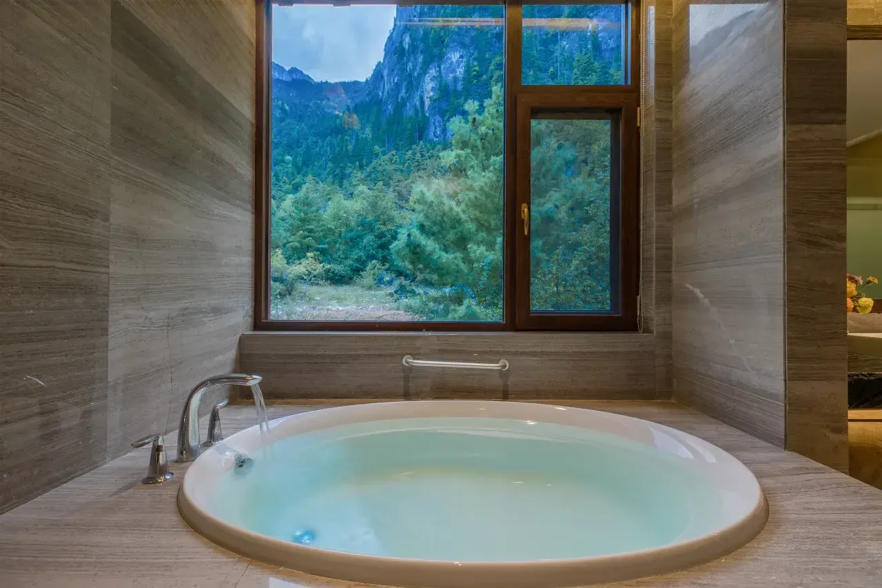 坐拥雪山环抱的绝佳位置,以"藏地养生哲学"为核心理念。庄园依托天然冰泉水脉,将藏药浴与现代水疗完美结合。所有客房(50㎡左右)均引入雪山冰泉入户,配备地暖与观星天窗。清晨在露天温泉池边欣赏日照金山,午后跟随藏医学习配制传统药浴,夜晚在星空下体验高原温泉与冰泉的冷热交替疗法。在这里,每一口呼吸都充满雪山的清冽,每一次浸泡都是与自然能量的深度对话,让身心在圣洁之地获得重生。