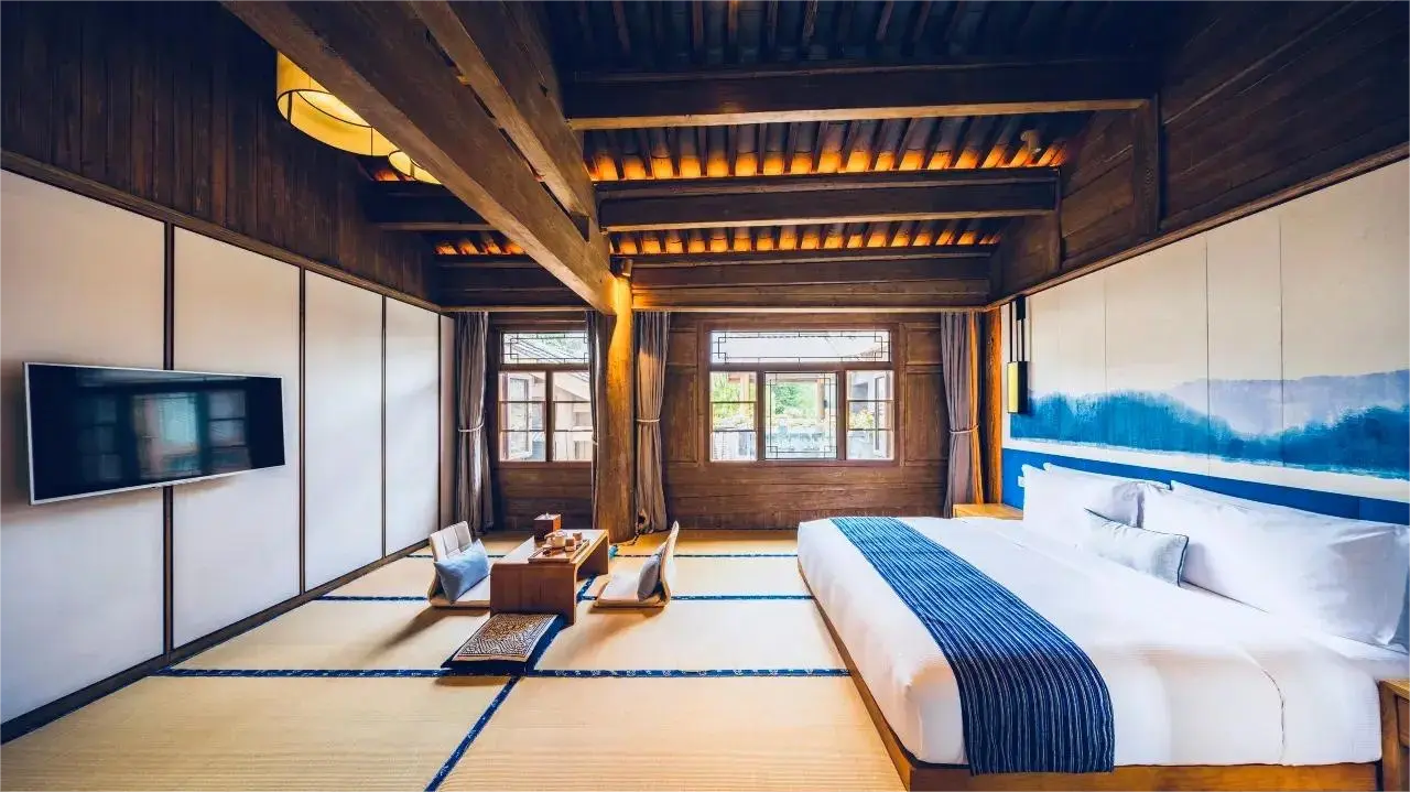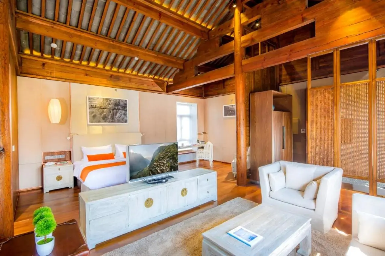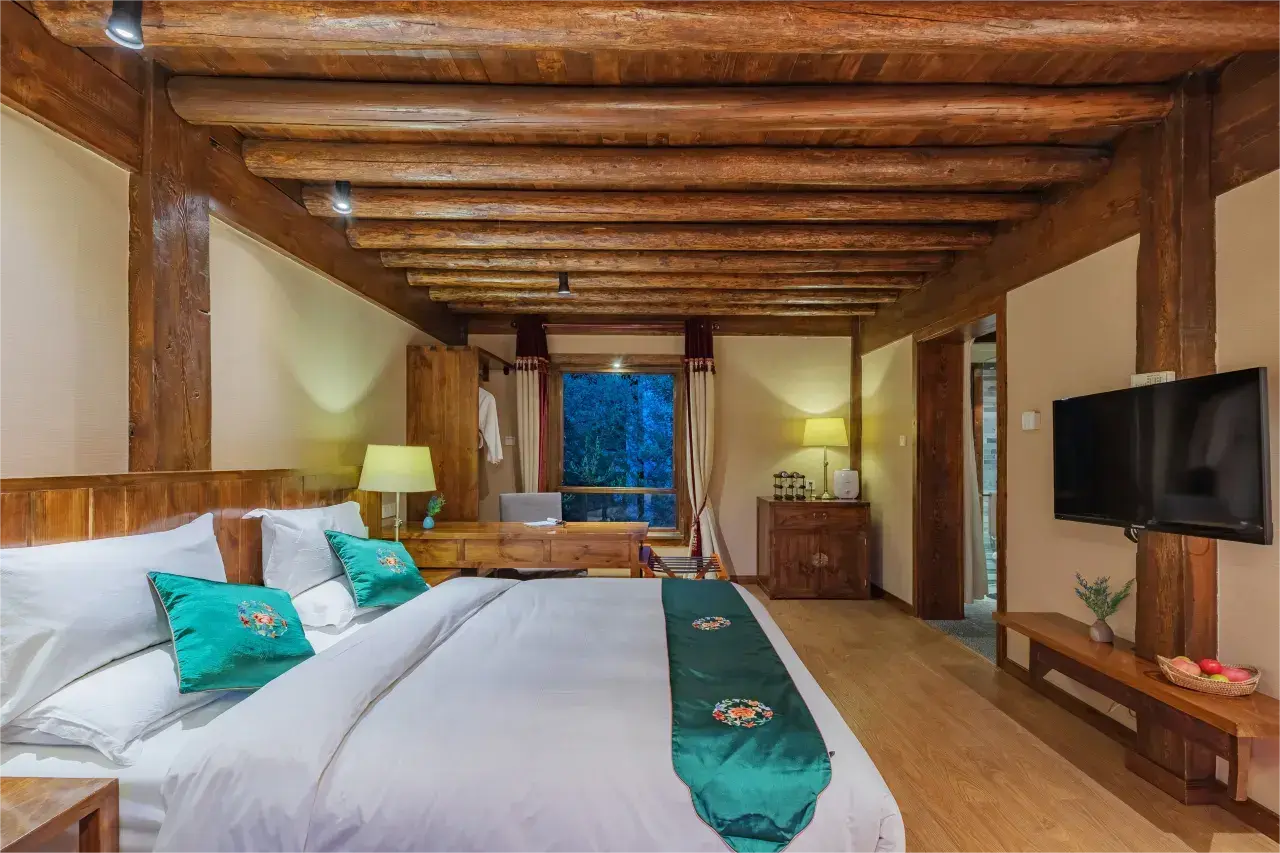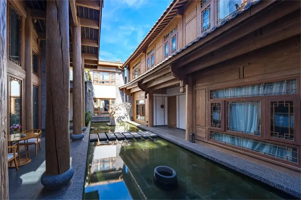 深藏丽江古城腹地,以"马帮驿站现代重生"为设计主题。38㎡起跳的客房采用纳六扇窗引光入室,配备普洱茶具与扎染艺术品。清晨在观景露台伴玉龙雪山轮廓品云南小粒咖啡,黄昏于书吧翻阅茶马古道史料,夜归时石板路映着灯笼暖光,完美复刻"马帮头骡"归家的温馨场景。