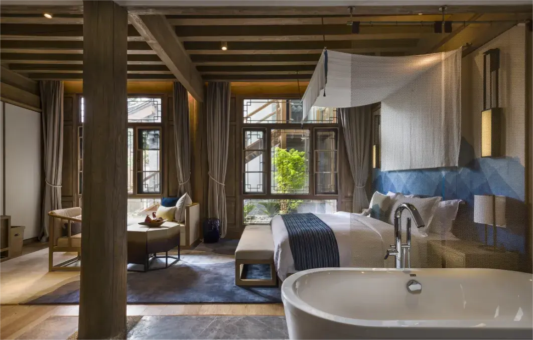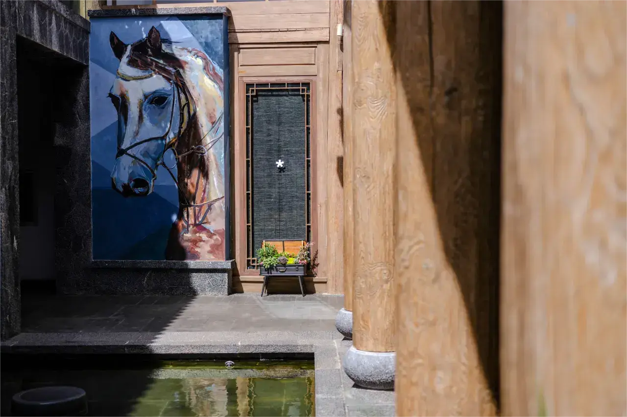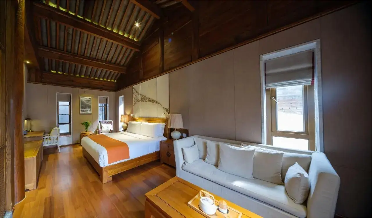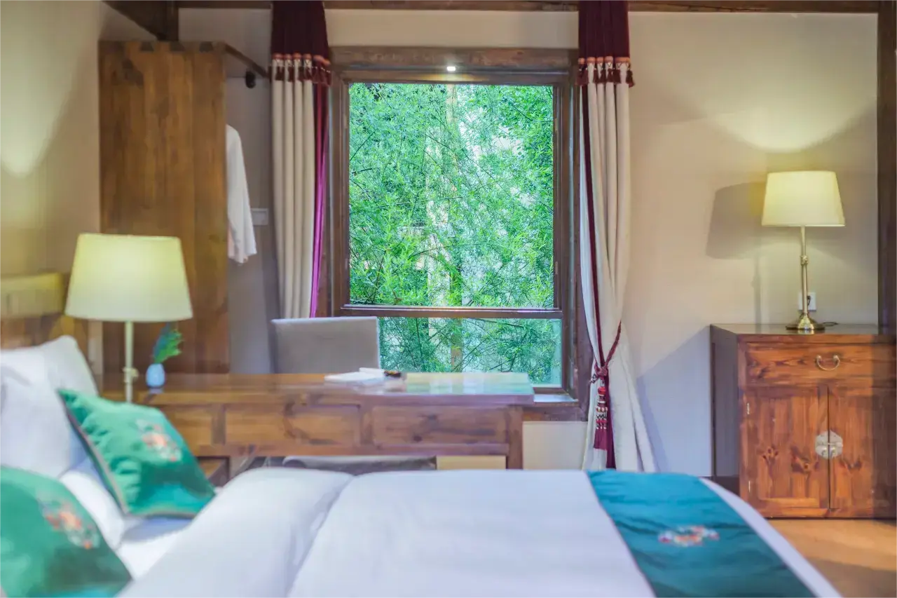 深藏丽江古城腹地,以"马帮驿站现代重生"为设计主题。38㎡起跳的客房采用纳六扇窗引光入室,配备普洱茶具与扎染艺术品。清晨在观景露台伴玉龙雪山轮廓品云南小粒咖啡,黄昏于书吧翻阅茶马古道史料,夜归时石板路映着灯笼暖光,完美复刻"马帮头骡"归家的温馨场景。