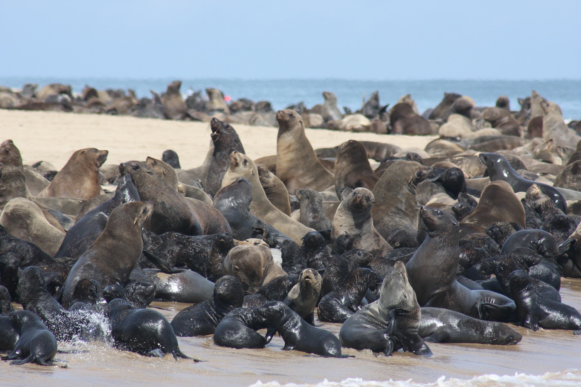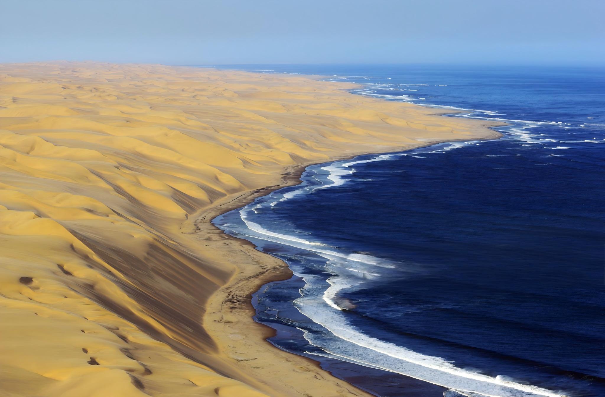 驱车北上至骷髅海岸,大西洋的浓雾中若隐若现的沉船残骸与荒芜沙丘形成超现实图景。葡萄牙探险者五百年前刻在礁石上的十字架已被海风侵蚀得模糊难辨,而今日的渔夫仍遵循古老禁忌绕过这片"魔鬼海域"。在十字角海域,十万只海豹的咆哮声盖过了惊涛拍岸,成群的狒狒在礁石间盗取海豹幼崽,上演着延续千年的生存博弈。